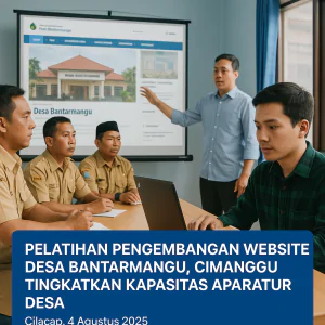Cilacap, 4 Agustus 2025 – Dalam upaya meningkatkan layanan informasi publik dan pengelolaan administrasi desa berbasis digital, Desa Bantarmangu, Kecamatan Cimanggu, Kabupaten Cilacap menggelar kegiatan Pelatihan Pengembangan Website Desa pada Senin (4/8/2025). Kegiatan ini diselenggarakan oleh Puskomedia dan diikuti oleh perangkat desa serta perwakilan lembaga desa.